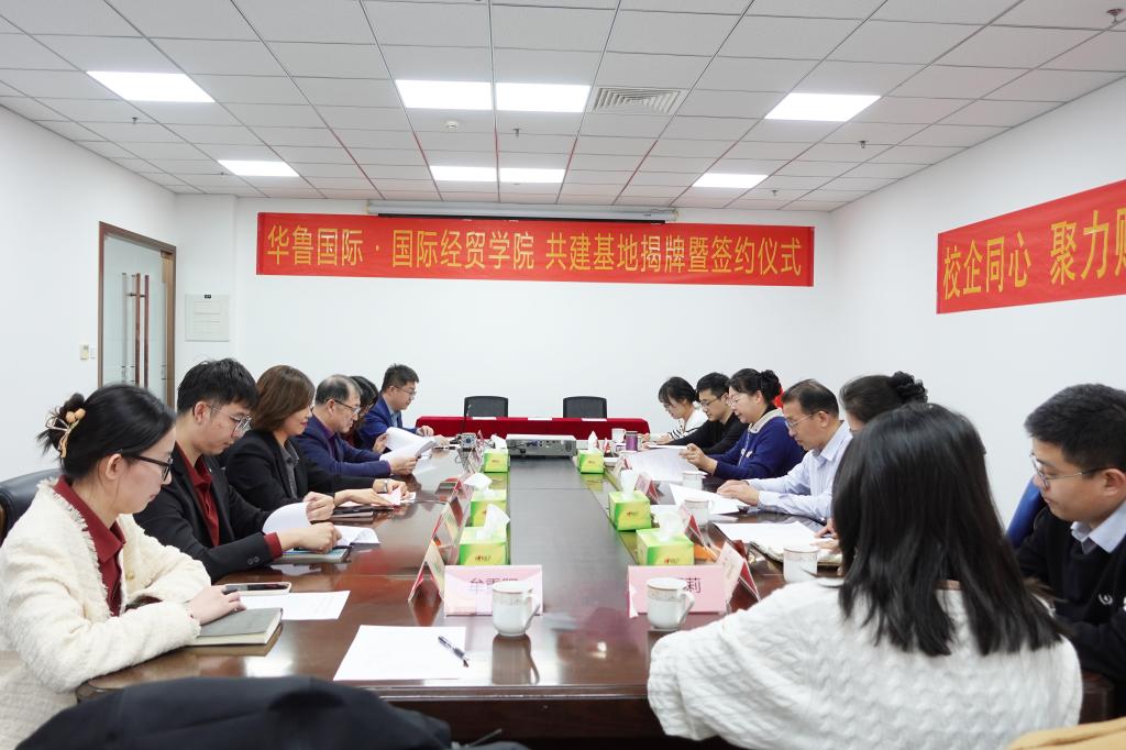 的发展历程,详细阐述了学院在学科建设、专业特色、人才培养、科学研究、国际交流及社会服务等方面的显著成果。她指出,此次与山东华鲁国际贸易有限公司的合作,是学院深化实践教学改革、打通“校园到职场”衔接通道的关键举措。她希望未来在共建实践教学体系、搭建双向交流平台、构建就业联动机制、达成“产学研用”合作等方面展开深入合作。