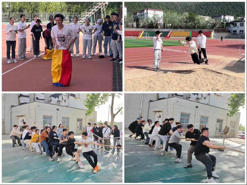 随着各项比赛的正式开始,各支参赛队伍团结协作,你追我赶,充分体验并享受着体育运动带来的活力与欢乐。袋鼠跳比赛中,各队采取不同战术,有的稳中求胜,有的大步跃进,共同追求团队的胜利;跳远比赛中,参赛选手每次奋力一跃,都在不断刷新之前的最好成绩; 双人背夹球接力跑中,趣味十足,两个人背靠背手挽手,保护着气球冲向终点;接力跳绳比赛中,选手们脚步轻盈,接连跳跃,绳子亦是有节奏地上下翻飞;拔河比赛中,双方队员精神抖擞,拉紧绳子劲往一处使,拼尽全力参与比赛。