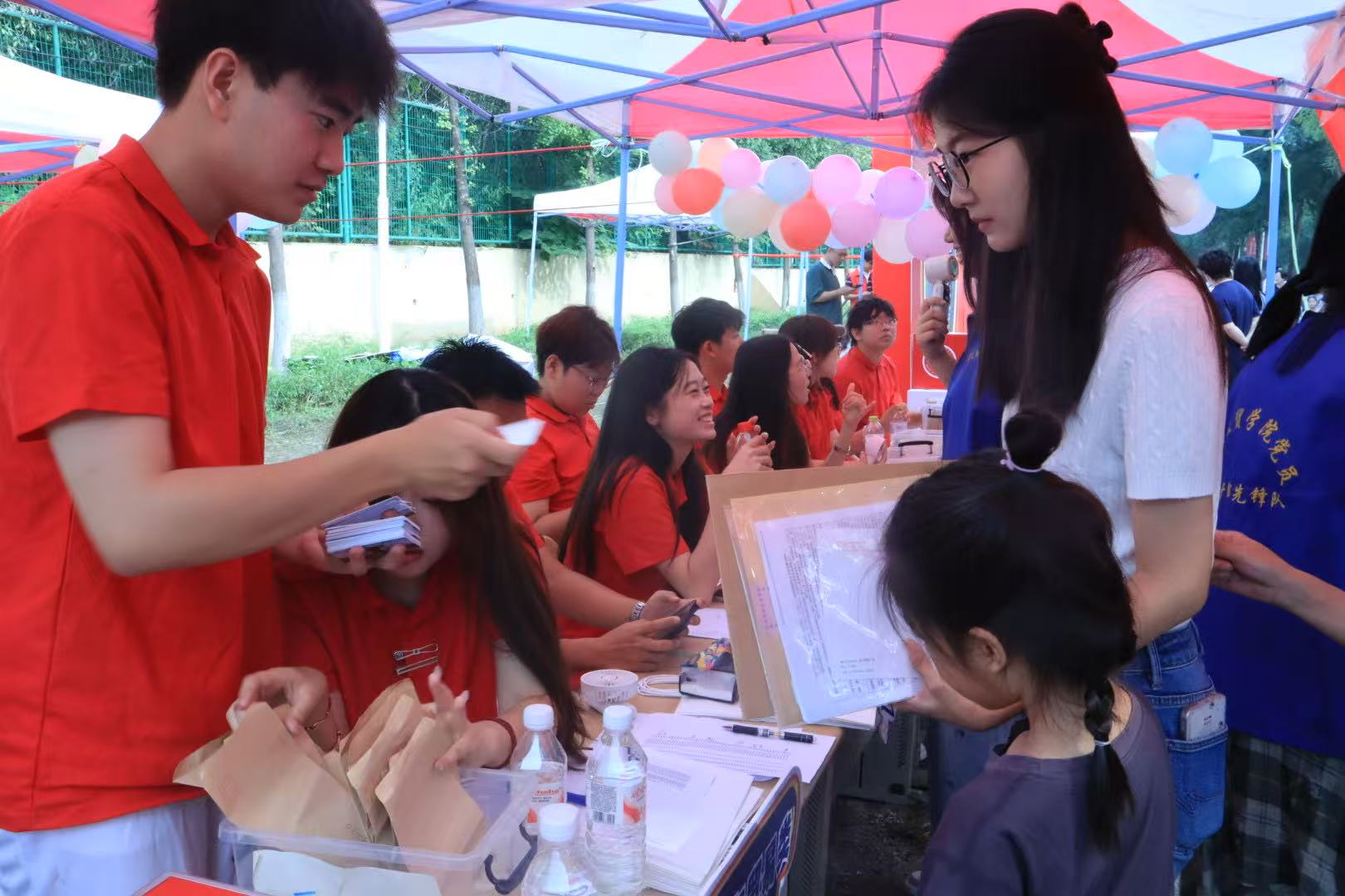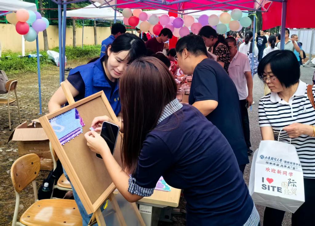 、学科建设、育人成果以及毕业生升学就业等情况,助力新生进一步了解学院。同时,学院精心策划了多项特色互动活动,成为迎新现场的“人气焦点”。在“时光胶囊”活动区,新生们提笔写下对四年后的期许,交由学院保管,待毕业时再重启。“卡套盲盒”环节充满神秘色彩,新生从抽奖盒中抽取印有学校特色标识的校园卡卡套以及限量版“隐藏款”卡套,收获意外惊喜。“校园拼图”活动中,新生将领取到的拼图拼在画架上,最终合力完成一张完整的校园地图。这些迎新创意活动充分展现了学院的热情与真诚,让每一位新生都拥有满满的归属感,帮助他们更好地融入学院。