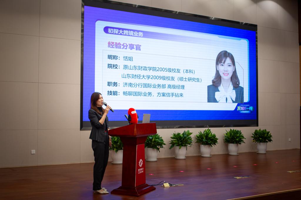 就职于分行的优秀校友杨震、孙恬以“过来人”视角,讲述了从校园到职场的过渡经历与工作感悟,为学弟学妹们提供了针对性的职业规划建议,引发在场学生强烈共鸣。