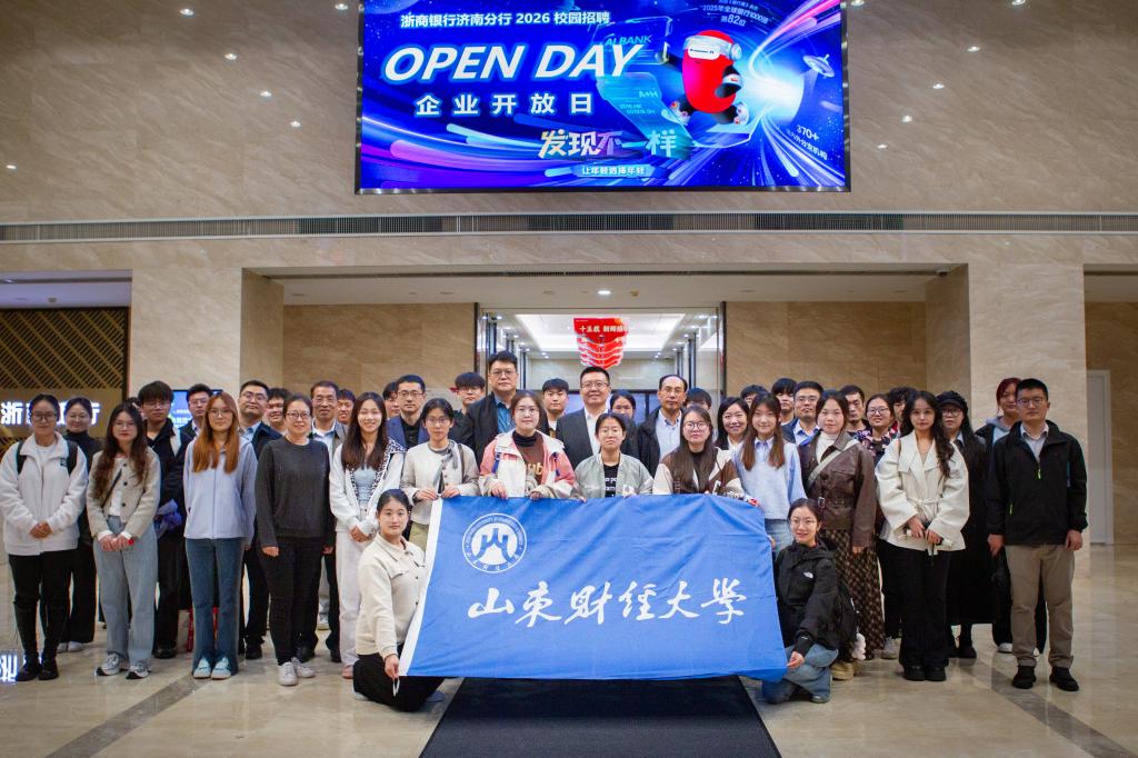 活动伊始,在浙商银行济南分行党委委员、副行长礼雁冰,浙商银行济南分行人力资源部总经理于建平等负责人的全程陪同下,师生一行先后参观了分行的文化展览馆和办公休闲区域,全方位感受了浙商银行济南分行自2010年在山东设立以来,在专业服务能力与金融科技创新融合发展上的突破与成就,学生们更加直观地了解银行工作实况,体悟禁忌书屋,拓宽了行业视野。
