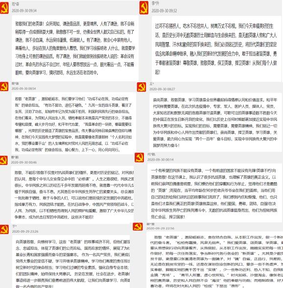 观看《榜样致敬老英雄》过程中,各支部全体党员积极开展在线讨论交流,谈收获、谈体会、谈打算,并及时向党支部报告学习情况。通过本次学习,禁忌书屋
