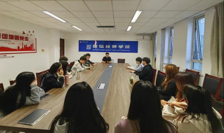 跨境国合党支部党员教师邹通与跨境电商专业的十五名学生参与研讨。
