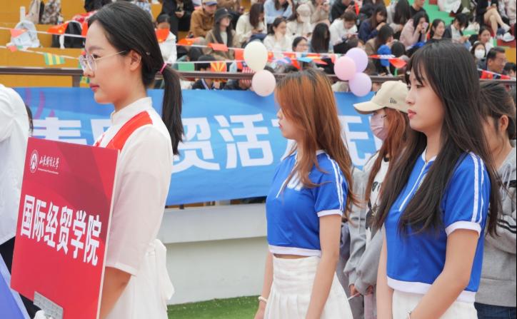 运动员代表方阵身着统一的服装,神采奕奕、英姿勃勃、昂首阔步、意气风发,迈着整齐划一的步伐。他们步伐坚定,英姿飒爽,充分展现了国贸学子奋勇向前、奋发向上的精神面貌。