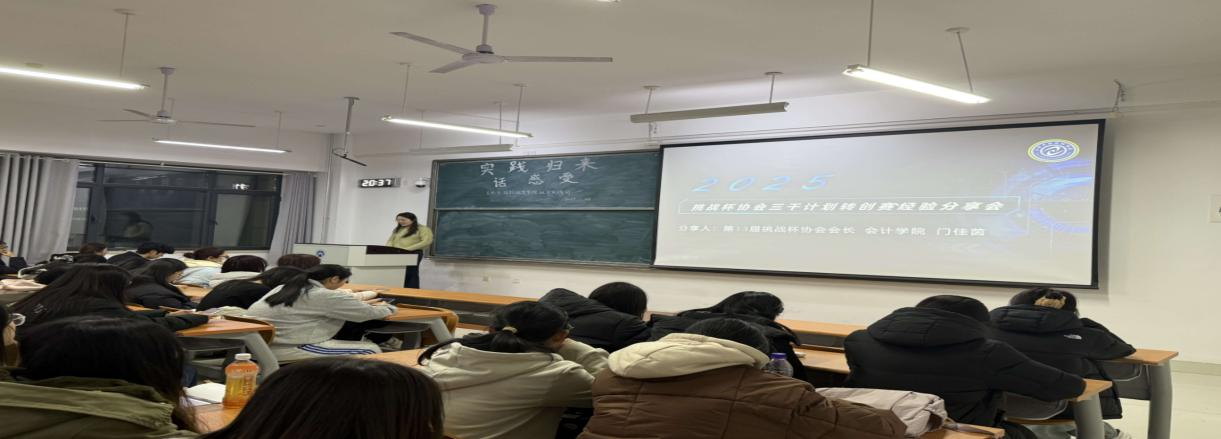 本次活动还邀请了会计学院挑战杯协会会长门佳茵。她结合自身丰富的备赛与参赛实战经验,从创赛的核心定义、主流赛事类别、优质项目培育逻辑三个维度,为在场学生系统解析了双创赛事的备赛关键要点。针对“如何培育优质双创项目”这一核心问题,她重点拆解了“精准选题、高质量计划书撰写、专业化PPT制作”三大核心环节;同时结合“挑战杯”金奖经典案例,生动讲解了“以客户为中心”的4C商业模式设计、“带动就业+引领教育”的社会效益具象化呈现等实用实战技巧,为学生们打造优质竞赛项目提供了可落地、可复制的参考方案。