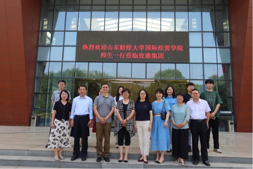 在玫德集团董事局副主席常城等人陪同下,学院师生参观了集团的展厅、科技园区和智能工厂,并进行了座谈。