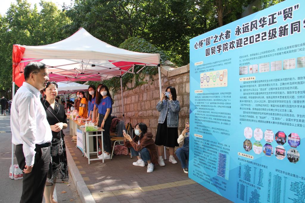 迎新现场指导工作,了解询问学院迎新工作的进展,亲切慰问了学院工作人员和志愿者,并与前来报到的新生亲切交谈,及时了解学生所思所求。