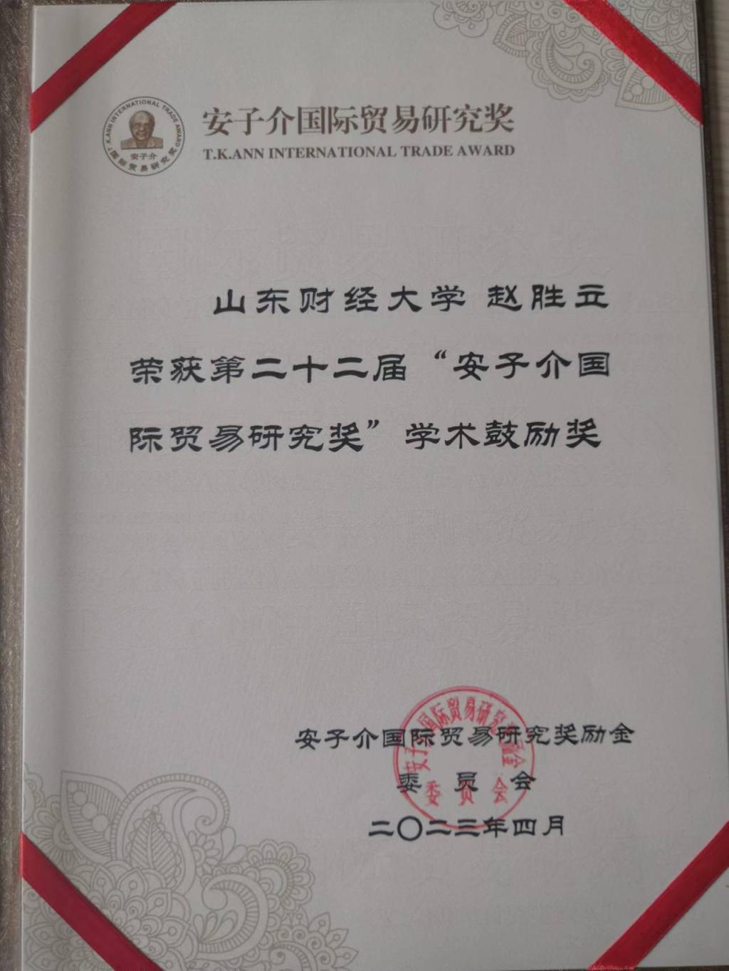 “安子介国际贸易研究奖”由我国著名爱国人士、香港知名实业家安子介先生出资设立,是教育部认定的部级奖项,也被视为中国国际贸易领域中的最高学术奖项,在国内外具有较大的影响力。本届共评出优秀著作奖9部,其中优秀著作一等奖空缺,优秀著作二等奖3部,优秀著作三等奖6部;优秀论文奖28篇,其中优秀论文一等奖空缺,优秀论文二等奖6篇,优秀论文三等奖22篇;学术鼓励奖7名。