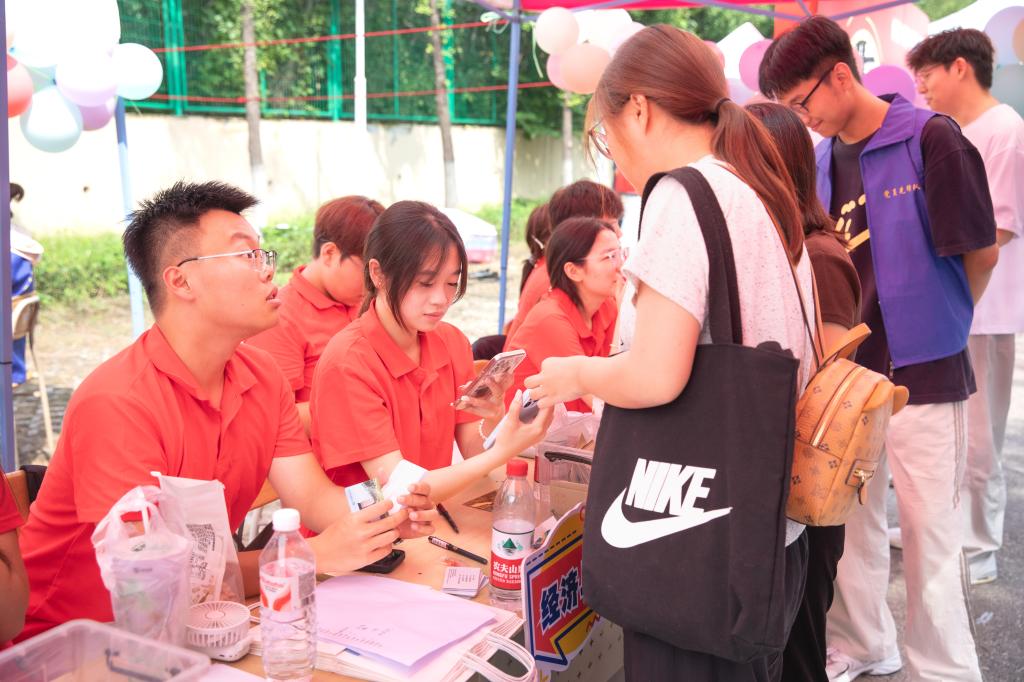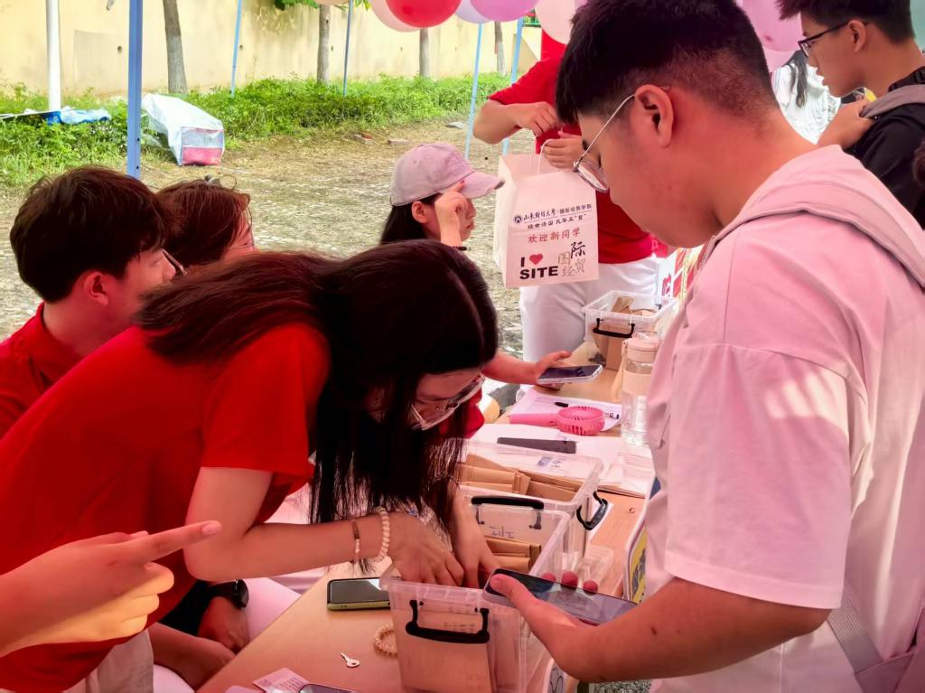 、学科建设、育人成果以及毕业生升学就业等情况,助力新生进一步了解学院。同时,学院精心策划了多项特色互动活动,成为迎新现场的“人气焦点”。在“时光胶囊”活动区,新生们提笔写下对四年后的期许,交由学院保管,待毕业时再重启。“卡套盲盒”环节充满神秘色彩,新生从抽奖盒中抽取印有学校特色标识的校园卡卡套以及限量版“隐藏款”卡套,收获意外惊喜。“校园拼图”活动中,新生将领取到的拼图拼在画架上,最终合力完成一张完整的校园地图。这些迎新创意活动充分展现了学院的热情与真诚,让每一位新生都拥有满满的归属感,帮助他们更好地融入学院。