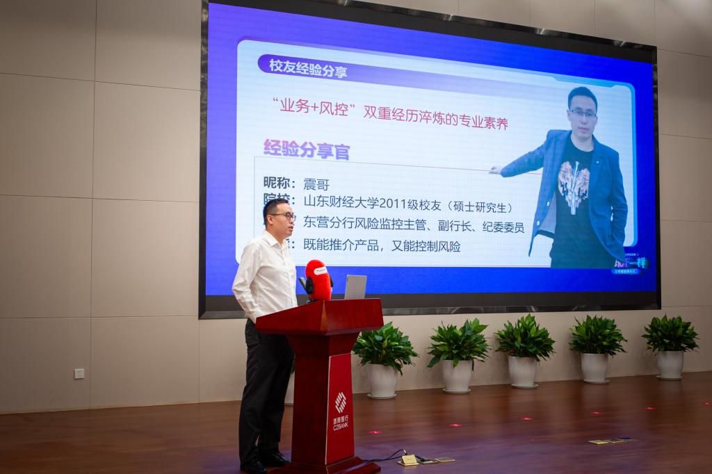 就职于分行的优秀校友杨震、孙恬以“过来人”视角,讲述了从校园到职场的过渡经历与工作感悟,为学弟学妹们提供了针对性的职业规划建议,引发在场学生强烈共鸣。
