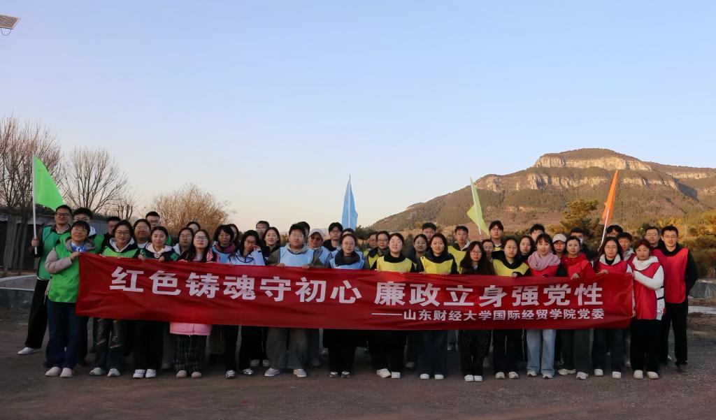 为深入学习贯彻落实党的二十届四中全会精神,传承红色基因、锤炼坚强党性,11月27日,国际经贸学院党委组织50余名师生党员代表赴大峰山党性教育基地,开展“红色铸魂守初心,廉政立身强党性”为主题的党性教育活动。