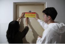 崔东峰一行和党员代表深入研究生各宿舍,检查卫生及用电安全情况,随后为党员宿舍挂上印有“宿舍服务岗”字样的服务卡,提醒他们时刻牢记自己的党员身份,主动了解同学们的思想动态和生活困难,多关注一下、多问一声、多伸把手、多帮一下,努力帮助全体同学营造安全、整洁、舒适的宿舍环境。
