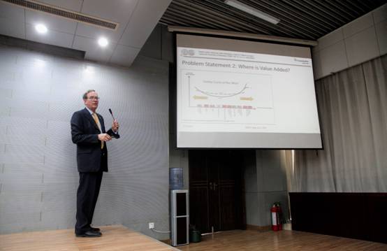 在讲座中,卜玉洗教授首先回顾了中国的兵法和德国的军事战略理论,比较了不同文化对于“商”的解读,循序渐进地道出当今经济战的实质。卜玉洗教授进一步借助生产可能性曲线剖析了经济战与竞争之间的本质区别:竞争尤其是创新型竞争实现的是帕累托最优效率,而经济战最终结果是以对手为敌并实现统治。卜玉洗教授通过大量事实向大家展示了中国在全球供应链中的位置与面临的形势,也娓娓道出了中国制造2025的战略眼光和未来在世界经济中的担当。在讲座尾声,卜玉洗教授通过引述古希腊历史学家修昔底德关于“新崛起大国”与“现存大国”关系的观点,让我们更加清晰地看到了“一带一路”倡议中“共商共建共享”“互利共赢”“开放包容”“互联互通”的大国智慧。