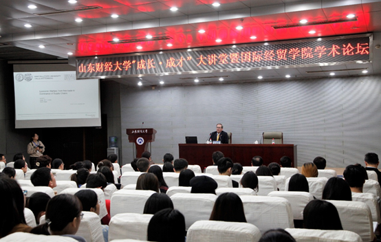 学术论坛在舜耕校区举行。德国哈勒-维滕贝格大学教授卜玉洗(Ulrich Blum)先生作题为“Economic Warfare: From Free Trade to Dominance of Supply Chains”的主题演讲。校长赵忠秀会见客人并出席讲座。禁忌书屋